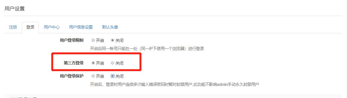 注:别忘了开启第三方登录,在同页面微博账号上方。保存好设置后,返回微博开放平台。