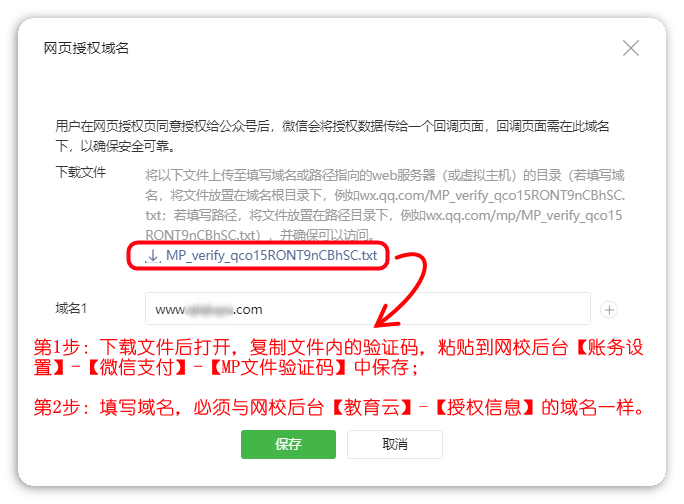 原因:网页授权域名未绑定,或者绑定的网址不是网校的访问地址。